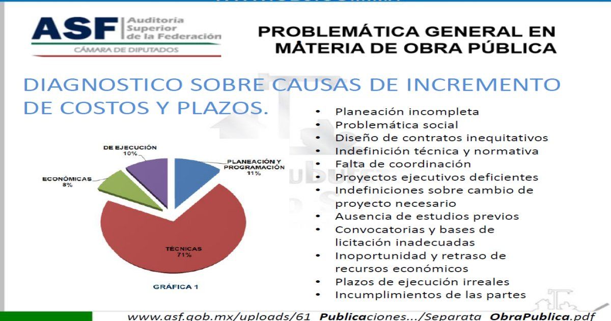 Actualmente muchos de los problemas económicos que enfrenta el sector de la construcción se debe principalmente a la falta de pago de estimaciones por parte de las dependencias, organismos y demás entes públicos con los cuales se mantiene un contrato de obra publica,
